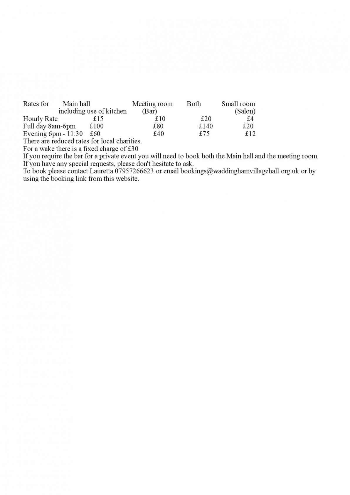 The main hall is large and can seat up to 150 in rows or 100 around tables. The hall has access to an outdoor grassed area which is fully fenced and also out through another door onto the Village Green.