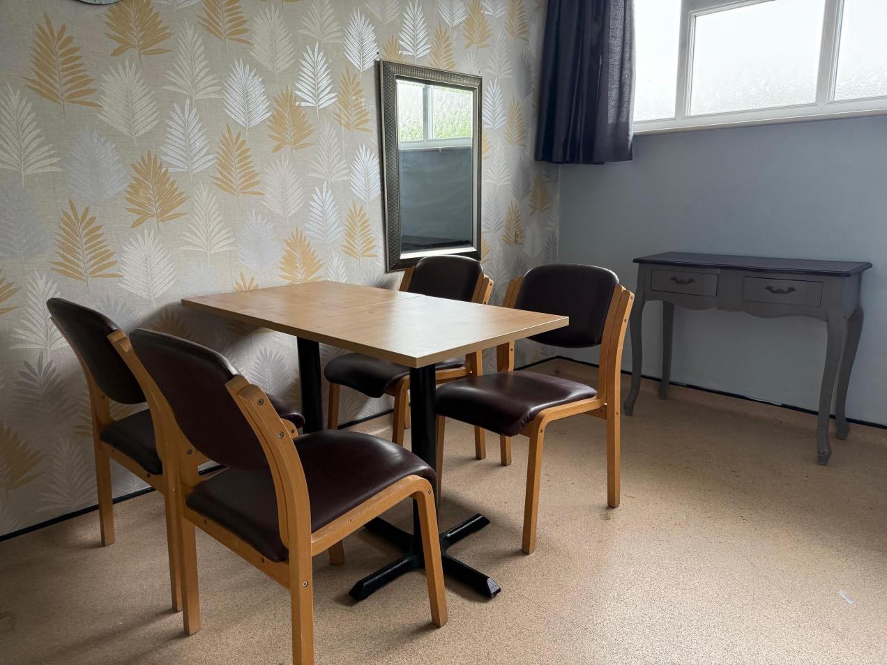 This room is equipped to be a hairdressing Salon, with a backwash chair and sink and a salon chair and mirror. It is though suited to many other uses. It is big enough to hold a massage table and could be set up as a manicure or therapy venue. It is also perfect as a small meeting room or an office. Free WiFi is available.